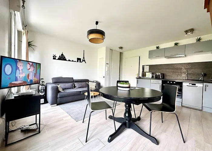 Wenn Sie einen frühen Flug aus Chessy haben, liegt das 60 m^2 große Duplex Disney Paris 40 km vom Flughafen Paris-Charles-de-Gaulle entfernt. Das 1-Zimmer-Apartment bietet Privatparkplatz vor Ort und moderne Annehmlichkeiten wie WLAN.